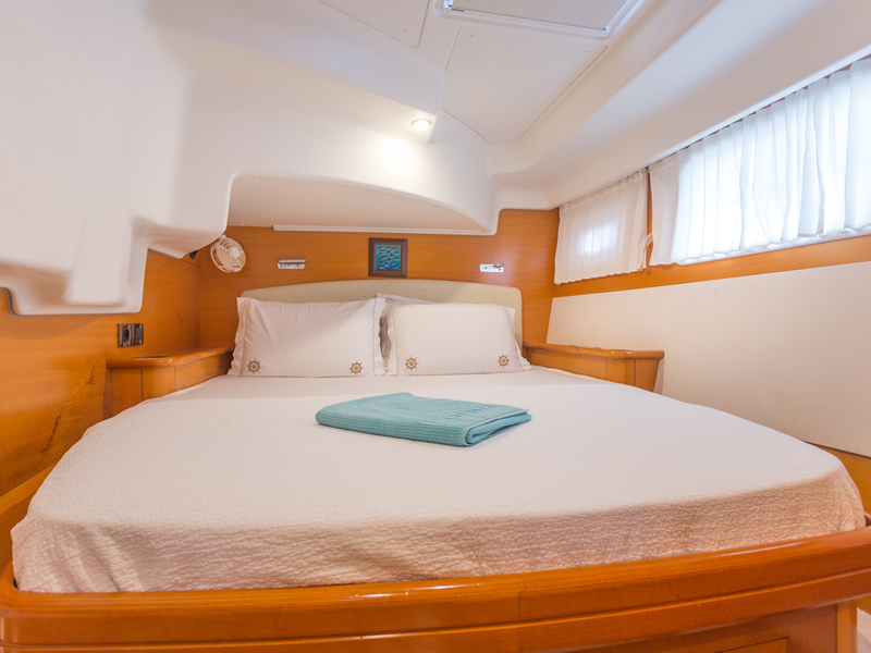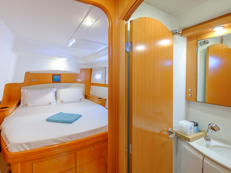 Our catamaran is the Lagoon 500 - 4 cabin version. At the starboard hull there are two spacious double ensuite cabins with separate shower and electric flush WC. In the port hull - there are two spacious double cabins both ensuite with shower/electric flush WC. All the cabins/saloon are air-conditioned. The spacious saloon in the middle has an opening to the aft cockpit so giving our guests a perfect layout for an indoor-outdoor living. Both the saloon and the cockpit is furnished with comfortable seating and dining arrangements for 10 guests...